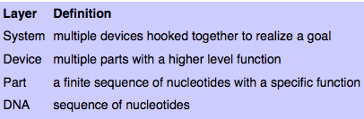 - Walk through one sample abstraction hierarchy that may guide synthetic biology
