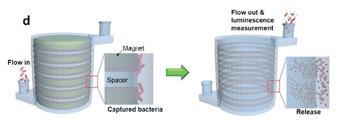 A good example of a microfluidic device created by the SLA is the immunomagnetic flow assay on-a-chip designed by Lee and team [1]. This experiment is a great example of how works that were previously restricted to laboratory due to their size can now be studied with the aid of 3D printing. The commercialized 3D Viper SLA system printed a cylindrical 3D micro-channel named as a High Capacity Efficient Magnetic O-shaped Separator(HEMOS). (Figure 1)