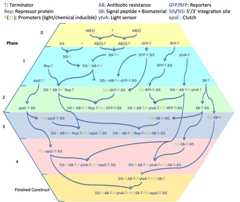 This also makes our cloning stratergy highly complicated. In order to building increasingly complicated constructs for our final product, we must first build and test simpler parts and devices.