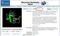 Go to www.pubmed.gov, type "Hen Egg-White Lysozyme" into the search box, put the search pulldown menu on "Structure" and hit GO. This will pull up a lot of hits of different structures of Lysozyme. Each entry is a distinct crystal structure. Often the different hits are mutants of the original, different inhibitors bound to the protein, or maybe just another author's structure of the same protein. Unless you know specifically what ID file you want, you usually use keyword searches and browsing through the list to find what you are looking for. For this example, we know exactly what we want: 1HEW.pdb. So, type "1HEW" in the search box and hit GO. You should get this: