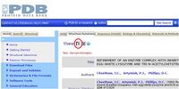There are several ways to get structure files (.pdb files) for viewing in DeepView. DeepView can access pdb files from the Protein Data Bank directly, but I'll show you how to get to things via pubmed. For this tutorial, we want to work with Hen Egg-White Lysozyme in complex with the trisaccharide inhibitor tri-(N-acetylglucosamine). The ID code for the file we want is 1HEW.