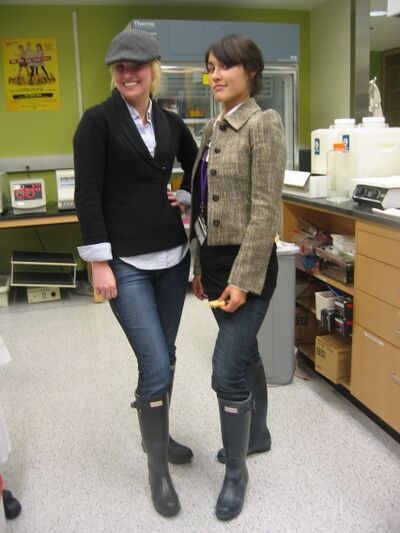 [[Image:julia3.JPG|400px|thumbnail|right|Julia(left), Kim(right), Hunter boots(Nordstrom, call for price quote)]] | [[Image:julia3.JPG|400px|thumbnail|right|Julia(left), Kim(right), Hunter boots(Nordstrom, call for price quote)]] | ||