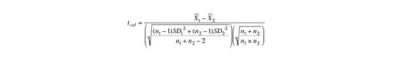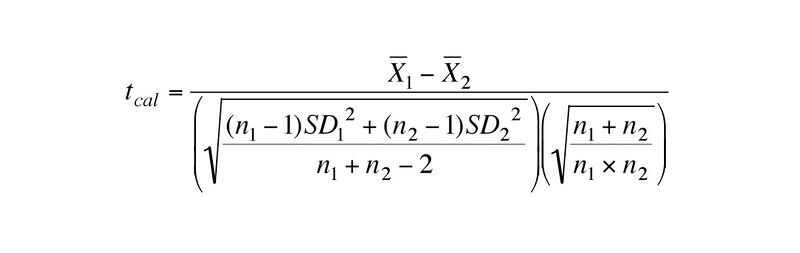 The t-test calculates a factor called the tcal by using the means, SDs, and the number of data points in each sample. Sometimes when calculated digitally, it is designated the tstat. The numerator of the tcal is a measure of the difference between the means of the samples;ts denominator is a measure of the their average variability (pooled variance), taking sample size into account. The order in which you enter the means will determine the sign of your tcal, but this does not affect its interpretation. Always report the absolute value of tcal.