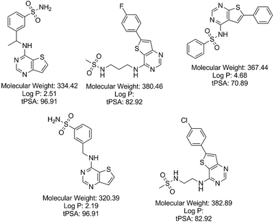 SMILES: Nc1ncnc2cc(sc12)c3cccc(c3)S(=O)(=O)N