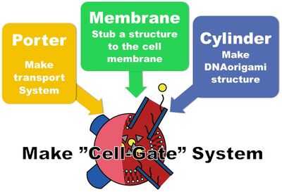 We will make the gate made of DNA origami! DNA origami is the way how to fold DNA and make structure investigated by Paul Rothemund.