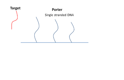 We thought to make DNA Porter which is function to transport the target in channel. One of the characteristic of DNA is to bind another DNA comprementary sequence to it. If we design that the DNA binds the target more stable than former one, and if next DNA binds more stable than it…, the target moves to most complementary sequence DNA. We thought this characteristic of DNA can be utilized the power of channel. This channel can make us transport the object selectively and actively independent of concentration gradient. We deceided to make the Porter made of DNA. DNA sequence of Porter is here.(Designページporterへのリンクを!...) And simulation of suitable Porter length.(simulationへの以下略) We did electrophoresis to confirm working of DNA. Experiment method and result is here.(experiment he no rinku wo!)