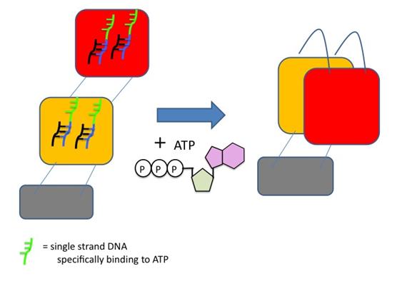 We thought of capturing ATP (Fig.3) or thrombin. We could not experiment because of the shortage of time, but we made arrangements of the DNA that bind to ATP or thrombin. | We thought of capturing ATP (Fig.3) or thrombin. We could not experiment because of the shortage of time, but we made arrangements of the DNA that bind to ATP or thrombin. | ||