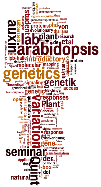 the quint lab is part of the [http://www.ipb-halle.de/en/research/molecular-signal-processing/ department of molecular signal processing] at the [http://www.ipb-halle.de/en/ leibniz institute of plant biochemistry] in halle (saale), | [[Image:Arabidopsis_smiley-compressed.jpg|400px|left]][[Image:Quintlab_wordle.png|350px|right]] <br> | ||