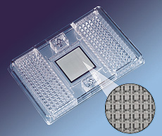 The Wafergen Smartchip system is a highly parallelized system allowing for running thousands of RT-PCR reactions on a single cartridge. Useful for genotyping and gene expression, the Smartchip works using very small reaction volumes (100nL) pipetted with a specialized automated liquid handler. The 72x72 chip can be filled in a broad variety of patterns. RT-PCR in the Wafergen system is compatible with TaqMan(TM), the Roche Universal priming kit, and SYBR Green technologies. | |||