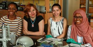 [[Image: | [[Image:Berkman_students_lab_summer_2016_NSF.jpg|300px|thumb|Research student Sabrina Phanor, Melanie Berkmen, student Michelle Lopez, and student Sabrina ali.|left]] | ||