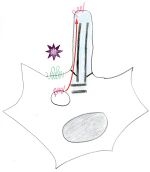 Given the variety of symptoms found in Bardet-Biedl syndrome, it is expected that organ-specific developmental pathways are defective in BBS patients. Following our hypothesis that the BBSome acts in vesicular transport to the primary cilium, one would predict that the BBSome targets tissue-specific signaling receptors to the ciliary membrane (depicted in green on the figure) and that a defective BBSome will render these pathways inactive. In collaboration with the lab of Val Sheffield, we have engineered a mouse strain that will allow us to biochemical isolate the BBSome and its associated factors. We will subject specific tissues to in-depth proteomics analysis of the BBSome with the aim of identifying specific signaling factors. Our goal is to uncover novel signaling pathways that utilize the cilium for signal capture or processing and to shed light on the molecular bais of symptoms such as obesity and retinal degeneration.