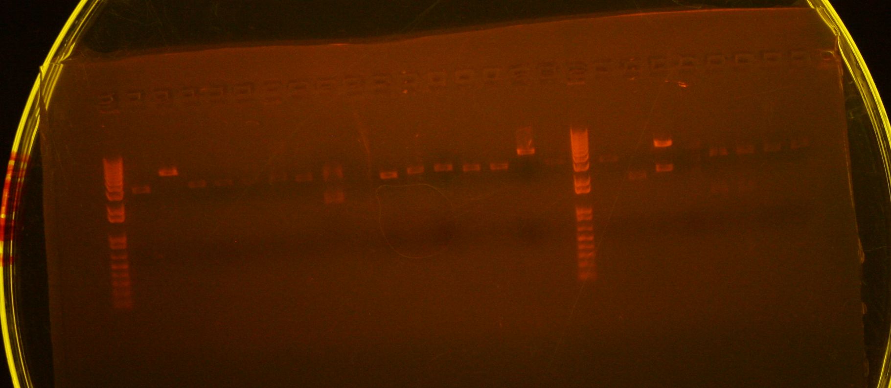 - Running colony PCR gel for Bca1152+pMLL5. Expected band at ~260.