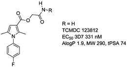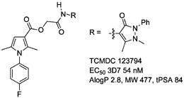 Series was released in a large dataset by GSK and later listed as one of the most promising leads from TCAMS set (though lacking aryl F)