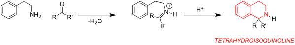 The PS reaction is particularly useful in the synthesis of tetrahydro-β-carboline and THIQ scaffolds typically associated with plant alkaloids. Other notable variations include the acyl- and alkyl-PS reactions and the modified PS to give fused quinoxalines. The PS reaction is a powerful tool in the synthesis of complex, biologically active polycyclic heterocycles.[THIQ antibiotics, see waldmann for review, receptor ligand studies]