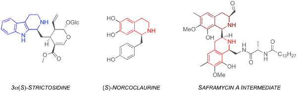 The class of enzymes known as Pictet-Spenglerases are instrumental in the synthesis of 3α(S)-strictosidine and (S)-norcoclaurine, which are key intermediates in the biosynthesis of numerous plant alkaloids (Figure 1).[2,3] Recent studies of a biosynthetic pathway to the antiobiotic saframycin A have revealed that a bacterium nonribosomal peptide synthetase constructs the scaffold via two PS reactions.[4]