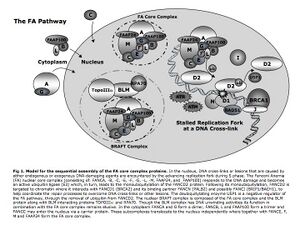 - Meetei AR, Medhurst AL, Ling C, Xue Y, Singh TR, Bier P, Steltenpool J, Stone S , Dokal I, Mathew CG, Hoatlin M, Joenje H, de Winter JP, Wang W. A human ortholog of archaeal DNA repair protein Hef is defective in Fanconi anemia complementation group M. Nat Genet. 2005, 37(9):958-63. abstract