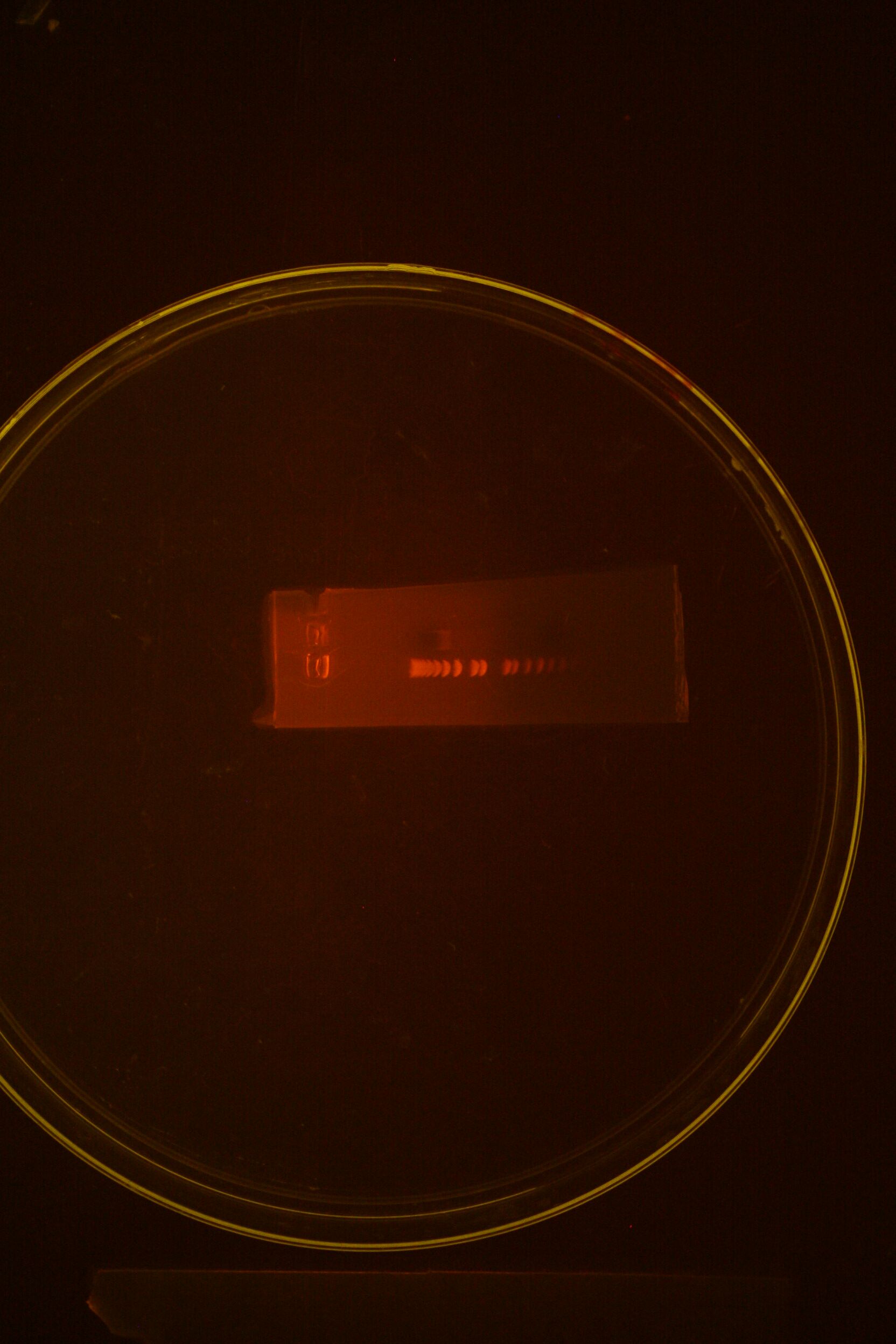 - Transformed (spec)1256-2343 and (spec)1256-2344 into MG1655. Used minipreps of spec1256-2343 and spec1256-2344 from box and diluted 10x. Mixed 50ul MG1655 with 17.5ul KCN and added 1ul diluted DNA. Incubated for 1hr and plated on Spec. Left in incubator to grow