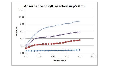 Comparative Kinetics of XylE enzyme and GFP-XylE fusion protein