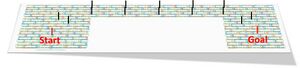 The legs of our molecular robot have certain versatility, i.e. being the same leg type or different types. In our first idea about the triangular prism robot we thought it to have three different kinds of legs for performing its rolling motion. However, our simulation program predicted the robot to have a more efficient movement by just having one type of legs [5]. In this section we would like to describe our first design where the robot utilizes three different legs, substrates and field sequences (Figure 1) for its motion mechanism. For robustness, the system is designed to have two legs of the same type in each of the three edges of the prism shape robot (Figure 2). The DNA sequences of these legs were calculated by carrying out a Monte-Carlo optimization using the Java version of DNA Design Toolbox.