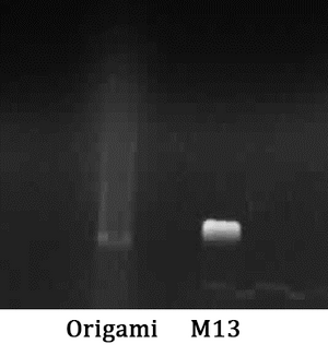 - The staple strands and M13MP18 were annealed in PCR, and formed the origami container.