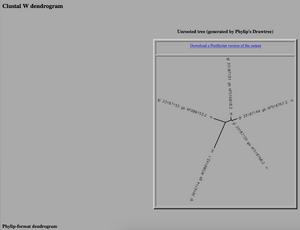 - Look at similarities between the sequences". Unrooted tree shown to right.