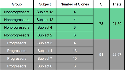 Statistical Data of our grouping of Progressors and Nonprogressors: