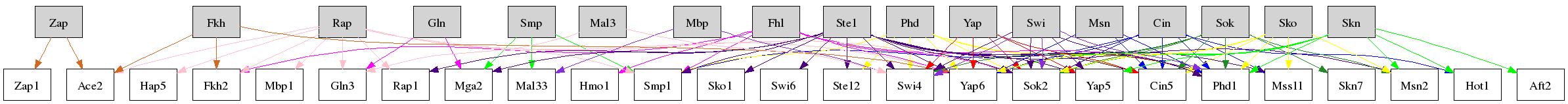 - Are Cin5, Gln3, Hmo1, and Zap1 on the list? What percentage of the genes in the cluster does they each regulate? How many genes does they each regulate?