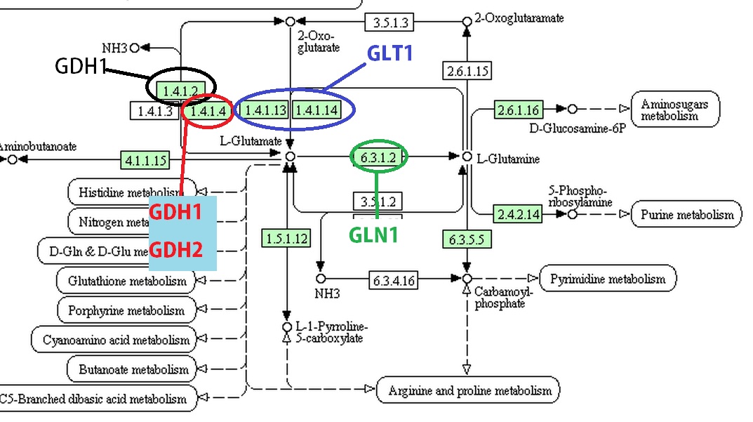 - GLN1- Expression is "regulated by nitrogen source and by amino acid limitation" GLN1