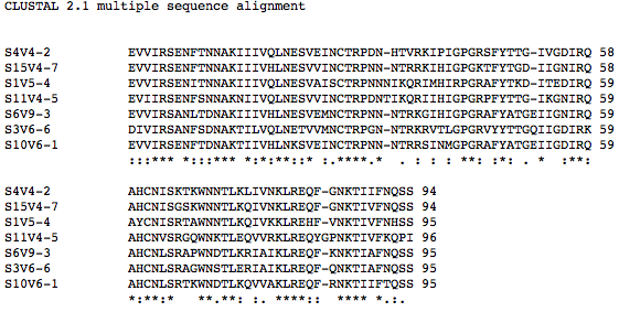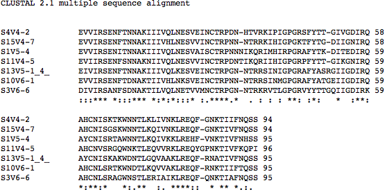 - As seen from the multiple sequence alignments above, there are conserved regions of the V3 loop. However, these amino acid sequences show that there is not a major conserved region in the seqeunces that have AIDs when compared to the sequences that do not have AIDs (subject 6 and 13).