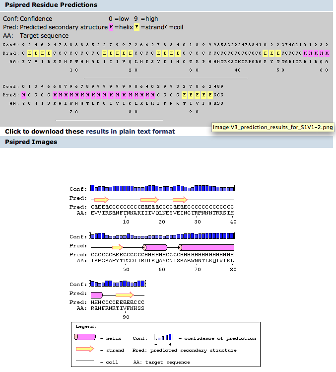 - Chapter 11 contains procedures to use for working with protein 3D structures. Find the section on "Predicting the Secondary Structure of a Protein Sequence" and perform this on both the entire gp120 sequence and on the V3 fragment that we are now working with. You will compare the predictions with the actual structures.