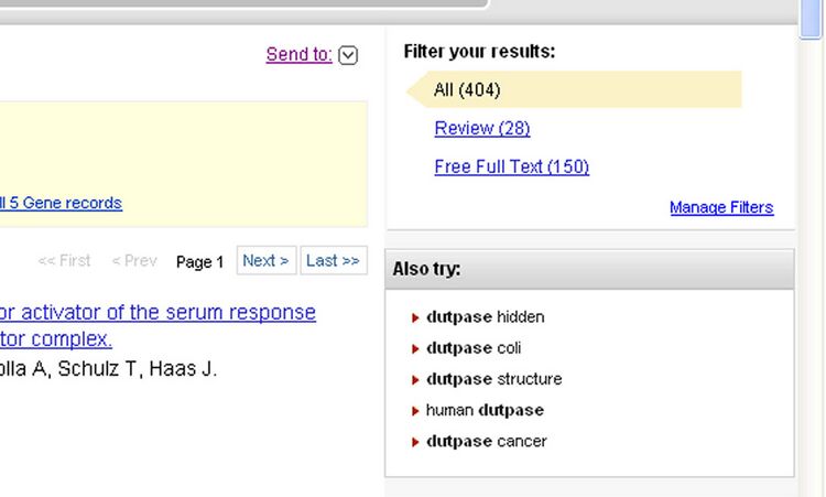 - Searching "dUTPase" turns up multiple results, but few define what it is. So, I clicked on the suggested search "human dUTPase" under the "Also Try" menu