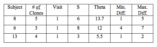 - The clones from each subject do cluster together, but none of the subjects cluster together. They seem to be all equally diverse from the other subjects.
