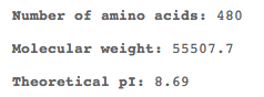 - After entering this sequence into ProtParam, it gave me a bunch of results for the protein sequence. Here is a sample: