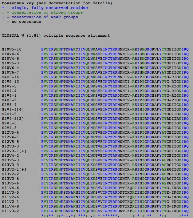 - We have chosen to analyze two sequences in depth- one from a rapid progressor (S11, V4-6) and one from a nonprogressor (S12,V4-1). We decided on these two sequences because Subject 11 differed from the standard more often than the other groups. Conversely, Subject 12 seemed to have the most sequences that were a consensus for the protein.
