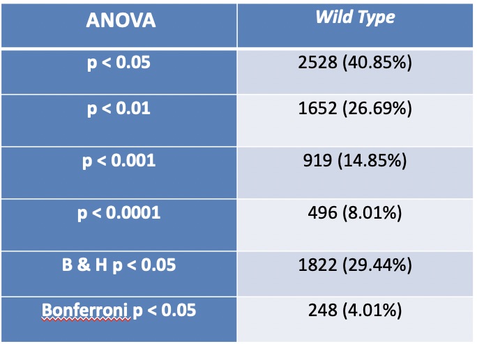 How many genes have p < 0.05? and what is the percentage (out of 6189)? 2528 genes (40.85%)