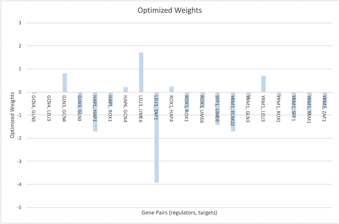 Figure 1. Optimized weights of gene pairs from the output file developed by the MATLAB run.
