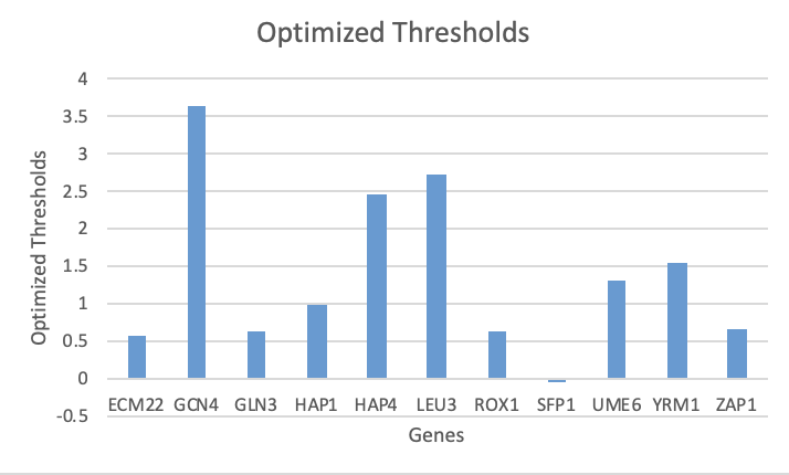 Figure 2. Optimized thresholds for each gene as given in the Excel output workbook.