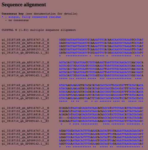 The purpose of this activity is to become familiar with ClustalW and to practice using the Biology Workbench. This activity also served as an opportunity to work with the paper that we will ultimately be using for journal club next week.