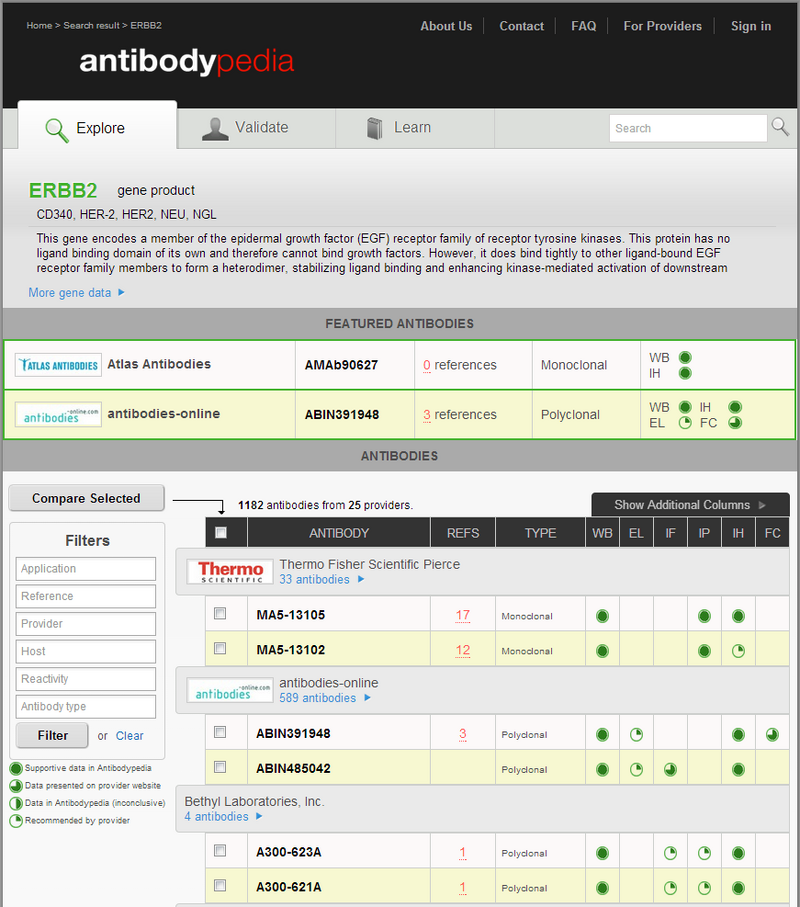 Antibodies of interest can be selected and compared before proceeding to an antibody provider product page.