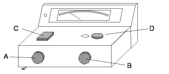 6. Use 100% Adjust Knob (B) to set meter to 100%T, which is equivalent to zero absorbance on the absorbance scale. Remove the blank tube.