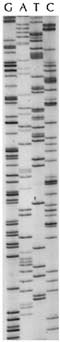 If we were to load these cycling reactions on a normal gel like we have in lab (and they were radiolabeled, which is an even older technology called Sanger sequencing), you'd see something like the gel at left (from http:// www.cambio.co.uk/images/html_images/sequitherm_cycle1.gif). In this gel, you can see that for every vertical space on the gel there is one band from one of the lanes. You can therefore read off what base was present at each position.