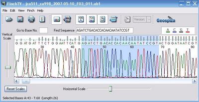 File:Jca387 ca998 2007-03-10 D02 005.txt (The calls) File:Jca387 ca998 2007-03-10 D02 005.ab1 (The chromatogram)