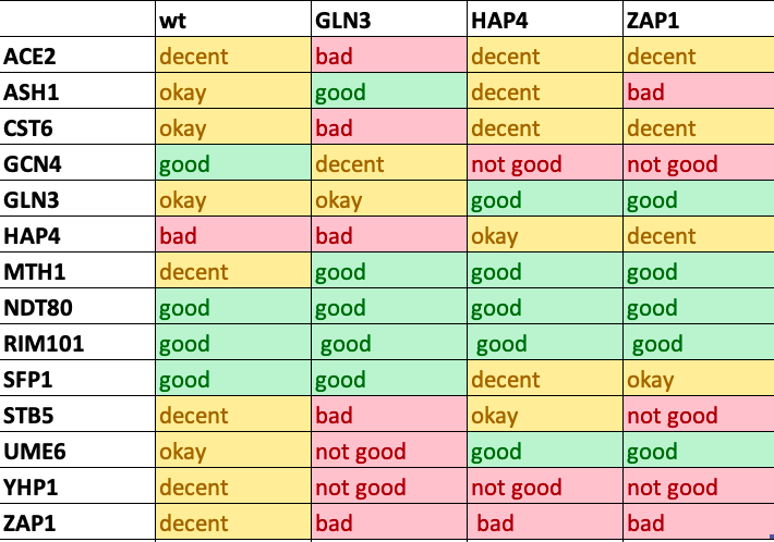 - For our initial runs, we included all three microarray datasets, wt, Δgln3, and Δhap4.