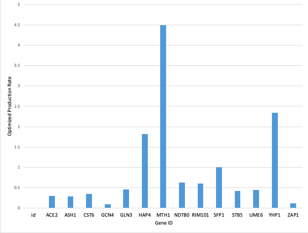 Figure 2: Bar chart displaying the optimized production rates for each gene.