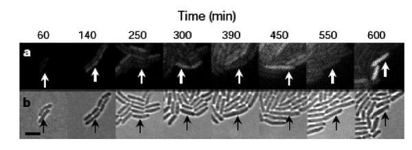 When the cells were built and tested, the GFP production fluctuated as the simulations predicted, but, perhaps surprisingly, not in every cell and not in unison. GFP oscillation was observed in ~ 40% of the cells (leaving ~60% of the cells not behaving as predicted), and for those that did flash, the period was measured as 160 minutes +/- 40. This observed period is longer than predicted by modeling, and showed a large standard deviation, with sibling cells exhibiting the most highly correlated behavior but only for a few cell divisions. So while this work provides an important demonstration of “cells built to order” it also reveals some inherent limitations.