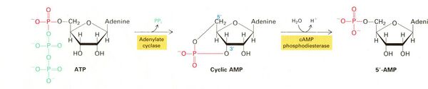 Many hormones use cAMP as a secondary messenger. The first such system investigated was the breakdown of glucose triggered by epinephrine. Since then, cAMP has been discovered to play a role in the action of vasopressin, liptropin, glucagon, calcitonin, thyroid-stimulating hormone and many other primary messengers. This large number of pathways utilizing a common messenger increases the potentiona for "cross talk" between signaling events. Recent work has indicated the importance of both spatial and temporal control of cAMP concentration. The exact nature of these controls is still an active area of research (DiPilato et al, 2004).