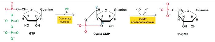 Cyclic GMP is very similar to cyclic AMP. It was discovered in urine in 1963 and considered a second messenger through investigating the mechanism of transducing the visual signal from photobleached rhodopsin to the cationic channels in the plasma membrane in the 1970's. The regulation of its synthesis has remained a mystery until recently.