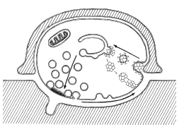 Synaptic vesicles are neurotransmitter-containing, membrane-bound organelles. They are initially generated in the cell bodies of neurons, and are subsequently transported along microtubules to axonal terminals. Depolarization of presynaptic nerve terminals leads to CALCIUM INFLUX into the cell. The calcium influx triggers the vesicles to fuse with the plasma membrane and release their neurotransmitter into the synaptic cleft. The rate at which vesicles can be transported from the soma to axon terminals is not sufficient for continuous neural activity. This lead to the hypothesis of SYNAPTIC VESICLE RECYCLING.