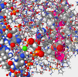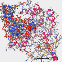 - I reset structure, then clicked on the Nucleic Acids tab to move the Atoms Size slider to the right (35%), increasing the size of the DNA segment.