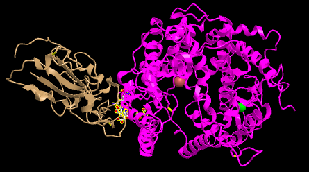 - The part of the ribbon that represents these amino acids were shown highlighted in yellow in the structure.